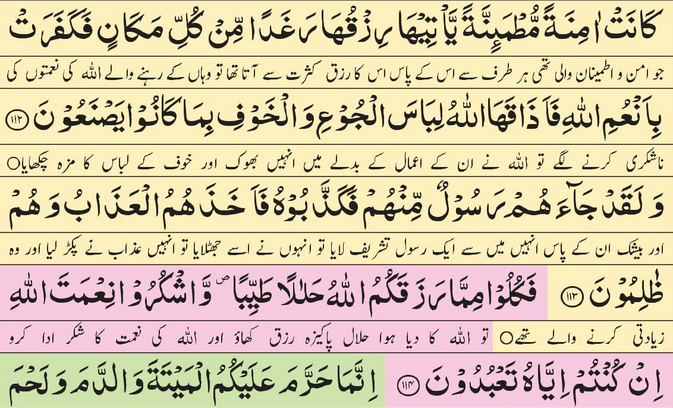 Surah nahl ayat 112 with urdu tarjuma and tafseer: