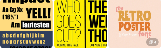 They are commonly used in advertising, social campaigns, and brand identity work. Examples include Impact, Bebas Neue, and retro-inspired headline fonts.